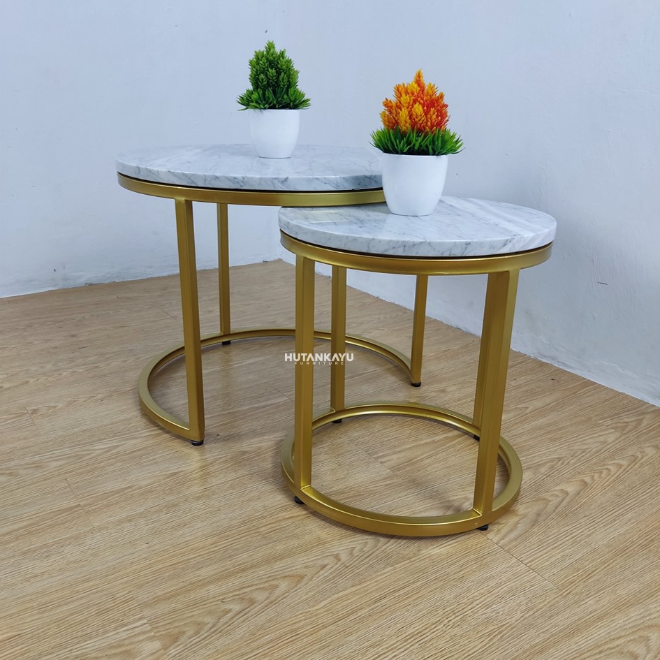 coffee table, meja tamu marmer, marmer carrara, meja nesting