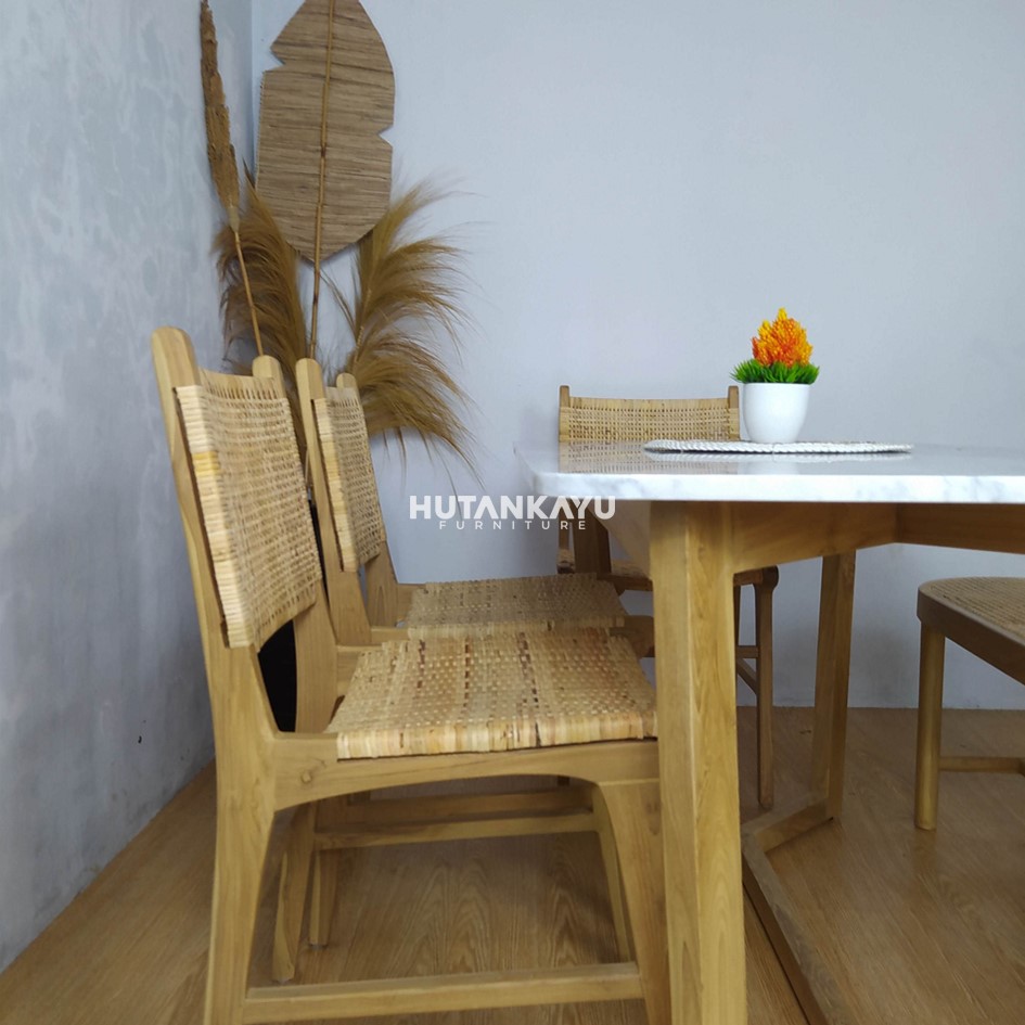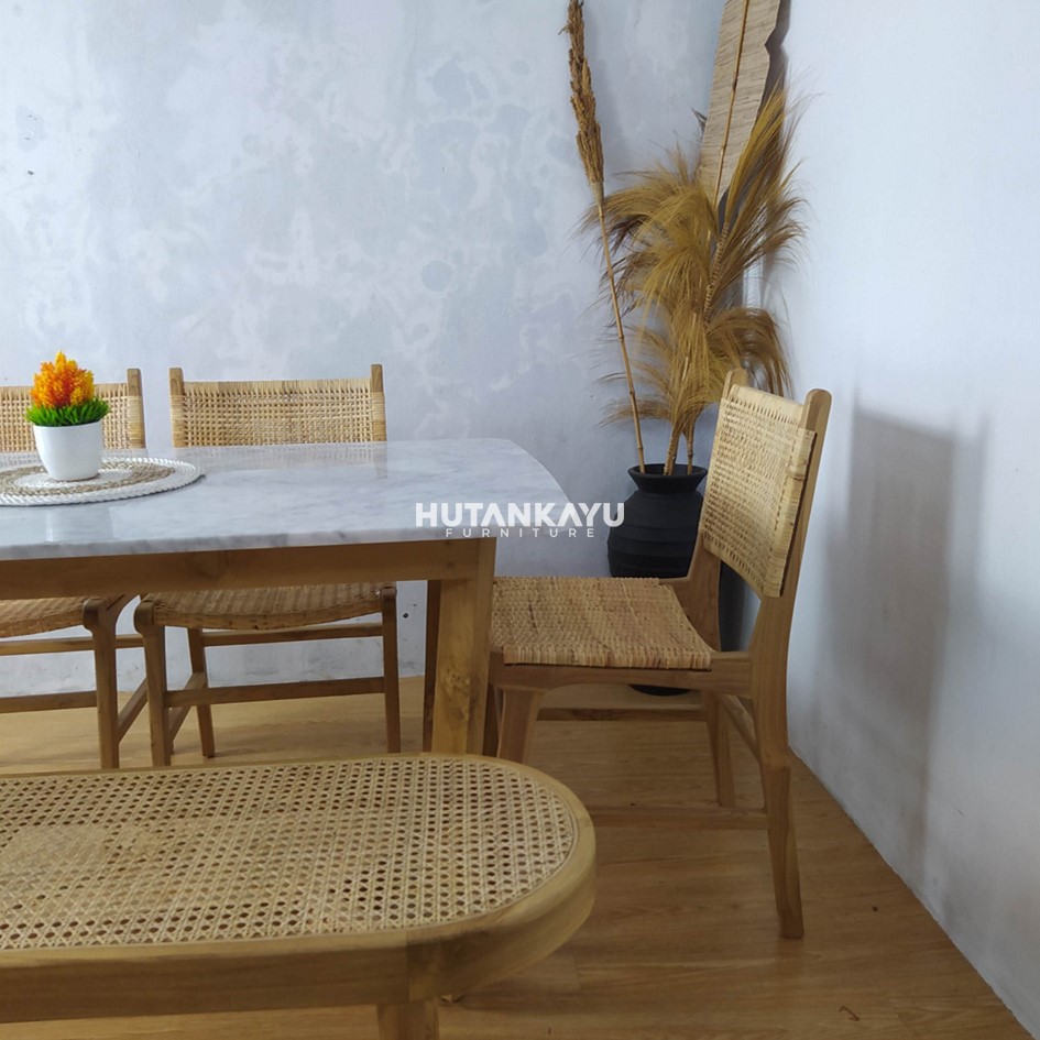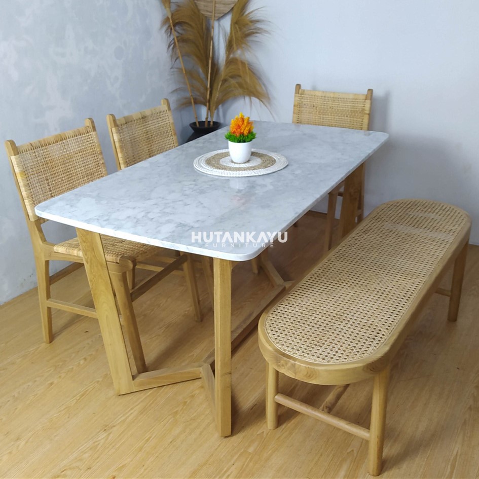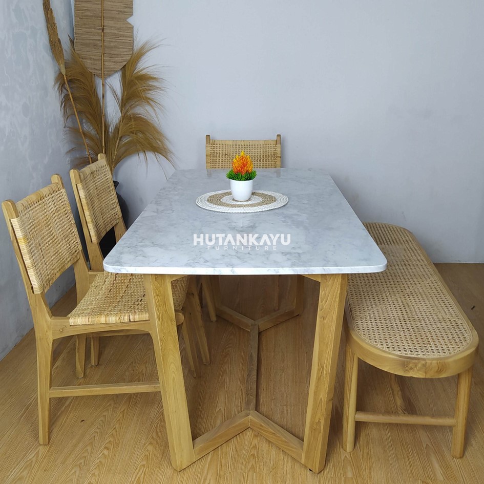 Material : Kayu Jati + Rotan + Marmer