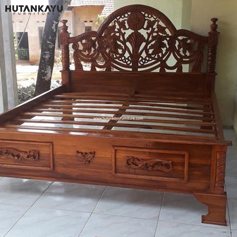 Spesifikasi: – Bahan : Kayu Jati – Ukuran : Dipan No. 2 atau 160 x 200 cm – Finishing : Brown, Semi Gloss