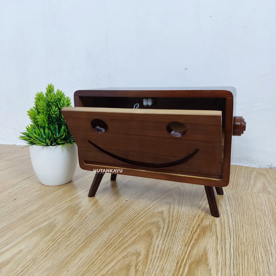 Spesifikasi: – Bahan : Kayu Jati – Ukuran : 25 x 11,5 x 19,5 cm (PxLxT) – Finishing : Brown Gloss